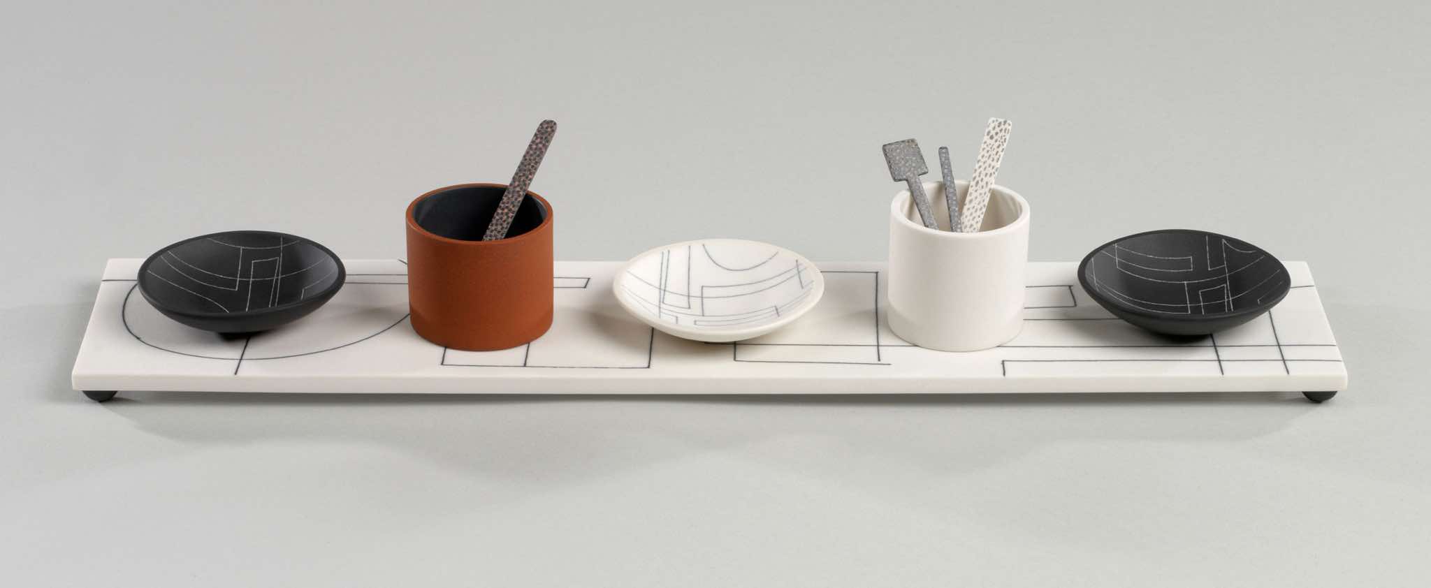 I am interested in the relationship between vessel forms and the space they occupy within a composition. The pieces do not have a specific function but there are references to the tabletop and the presentation of food